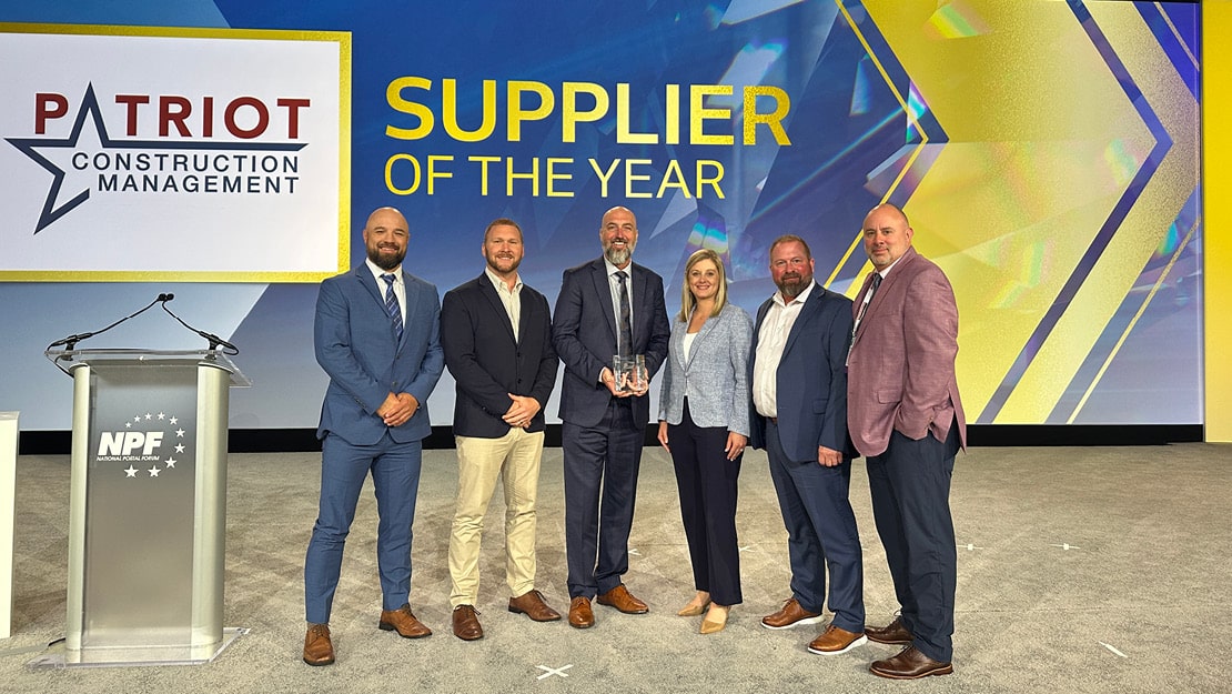 GPD Group, in partnership with Patriot Construction Management Services, is proud to be recognized by the United States Postal Service with two distinguished honors: the 2024 Supplier Performance Award and the 2024 Supplier of the Year Award. These awards were presented at the National Postal Forum in Nashville, Tennessee, where USPS celebrated its top-performing partners across the mailing and shipping supply chain.