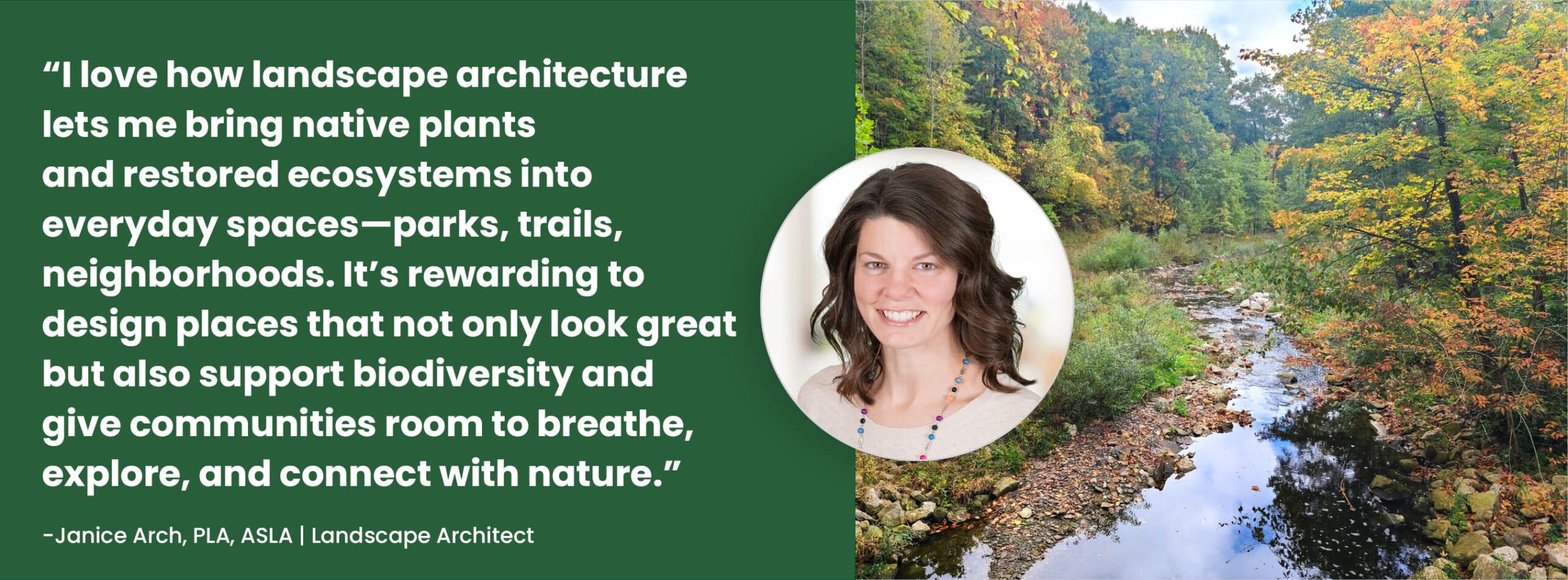 Our team of landscape architects is redefining communities by transforming landscapes. In honor of Landscape Architecture Month, we spoke to our team about what goes into designing spaces that seamlessly integrate the built and natural environment. Through their insights, we explore how thoughtful design positively impacts and benefits the community.