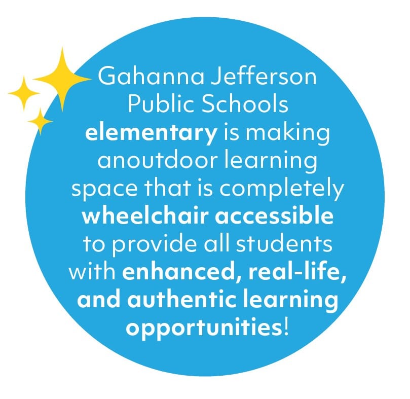 - Gahanna Jefferson Public Schools (Gahanna, OH) Accessible and Inclusive Outdoor Learning Space, $11,026