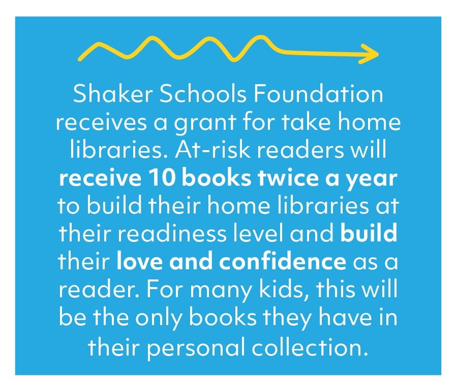 - Shaker Schools Foundation (Shaker Heights, OH) Take-Home Libraries for At-Risk Readers, $4,500